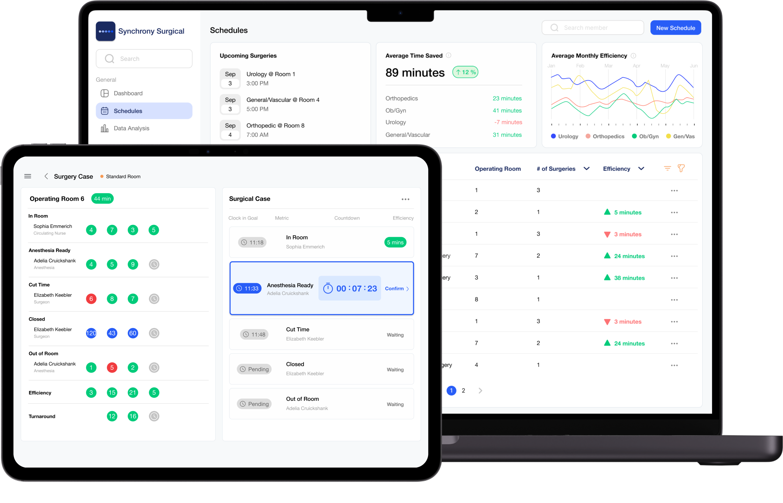 An efficient operating room will improve patient, staff, and surgeon satisfaction, improve hospital economics and reduce costs of care. Achieving significant improvements in operating room efficiency requires the communication of expectations and display of real-time data to drive performance and achieve measurable improvements.